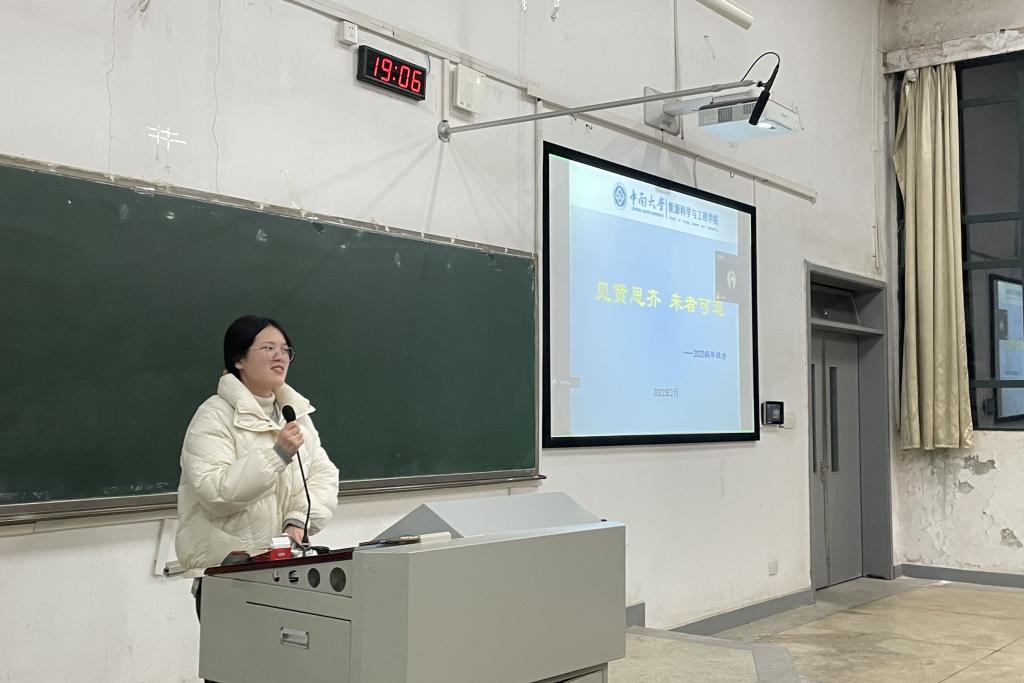 21 级年级会在新校区D座123顺利召开。本次年级会主题为“见贤思齐,来者可追”。会议能源院21级辅导员伍旺老师主持,邀请了裴非一学姐、袁云坚学长、曾志祥学长、李中达学长分别分享自己的经历。能源院21级全体学生分为线上、线下两种方式参加。