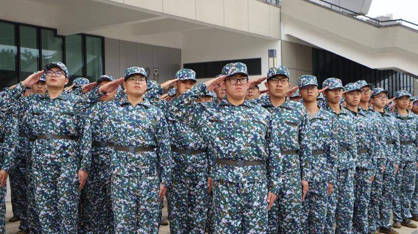 苦是训练苦、坚持苦、忍耐苦。站军姿时酸痛不已的双腿、练摆臂时咬牙坚持抬起的双臂、踢正步时用力砸向地面的双脚,训练的苦久久折磨着我们的身体、考验着我们的意识,但坚持下来时,在酸痛中学会忍耐后,心里又会泛起一丝"甜",这丝甜是自豪,也是对自己训练成果的肯定。