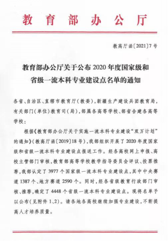 近日,教育部办公厅下发《关于公布2020年度国家级和省级一流本科专业建设点名单的通知》(教高厅函〔2021〕7号),W88优德能源与动力工程专业入选国家级一流本科专业建设点,建筑环境与能源应用工程专业、新能源科学与工程专业入选省级一流本科专业建设点。自此,W88优德3个本科专业均成功获批一流本科专业建设点。