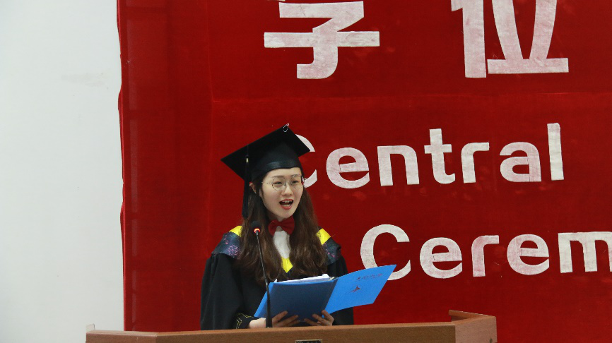 2019届硕士毕业生代表周冰洁则表达了毕业的喜悦和离别的不舍并抒发了内心真诚的祝愿与感谢:“感谢母校,感谢W88优德