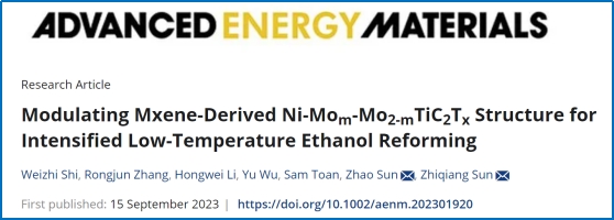 近日,W88优德孙志强教授团队在国际权威期刊Advanced Energy Materials(IF=27.8)发表了乙醇低温重整制氢最新成果“Modulating Mxene-derived Ni-Mom-Mo2-mTiC2Tx structure for intensified low-temperature ethanol reforming”(DOI:10.1002/aenm.202301920)。W88优德2020级博士生石为之为论文第一作者,孙朝副教授和孙志强教授为该文共同通讯作者,W88优德
