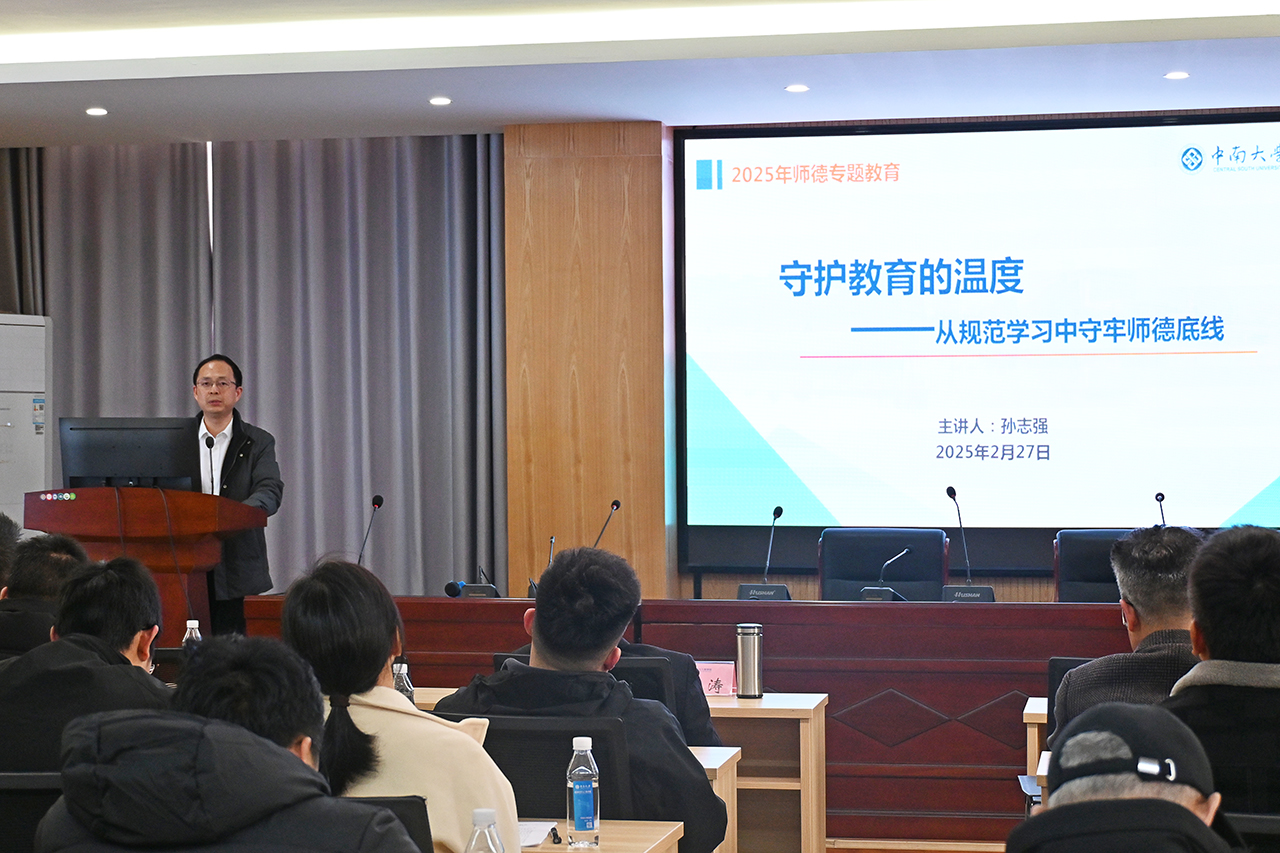 院长孙志强主讲“师德第一课”,详细解读了好老师的标准及新时代高校教师职业行为十项准则的内容,并结合案例深入分析了当前高校常见师德问题。他强调,师德违规“零容忍”将长期保持,每位教师都要坚持自律、自省,不断提升自我修养,用心守护教育的温度。
