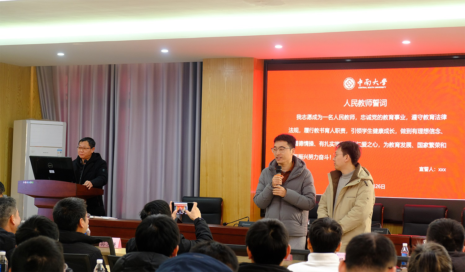 对两位教师的加入表示热烈欢迎,并强调,作为新时代的教育工作者,应坚定理想信念,涵养高尚师德,不忘立德树人初心,切实担当为党育人、为国育才的光荣使命,牢记誓词,严格要求自己,努力成为“四有”好老师。