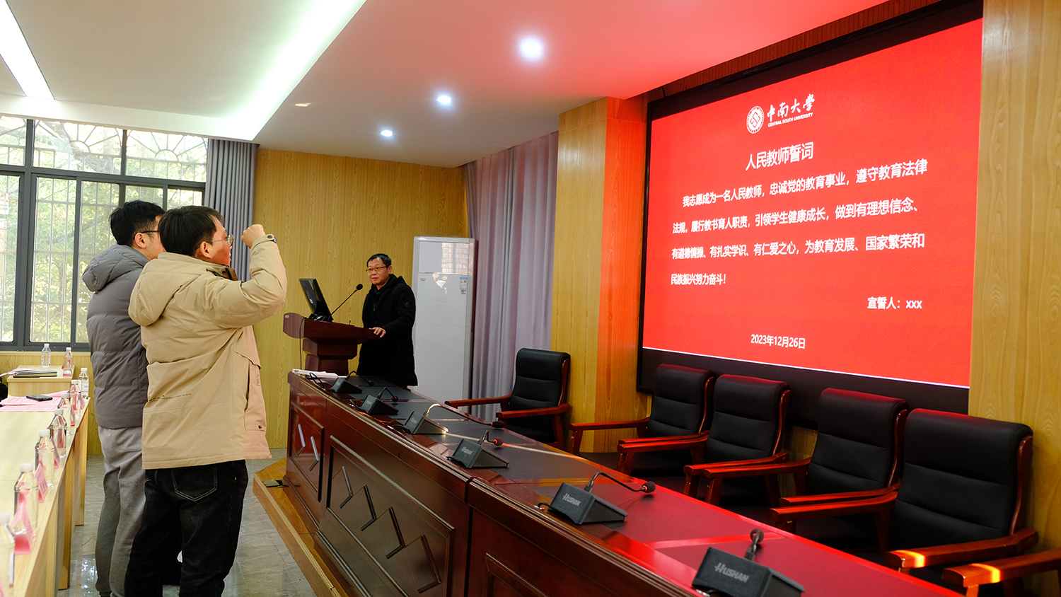 随后,由李海龙副院长领誓,两位新进教师高举右拳,庄严宣誓:“我志愿成为一名人民教师,忠诚党的教育事业……” 用铿锵有力的誓言作出郑重承诺。